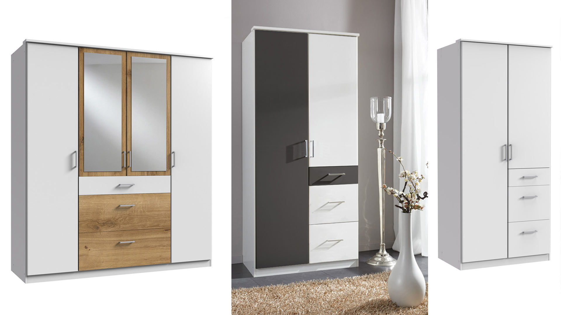 Bei der Schrankserie CLICK stehen dir insgesamt sechs verschiedene Kleiderschrankmodelle in drei verschiedenen Breiten inklusive zwei Eckschrankvarianten zur Auswahl, die mit diversen Schubkästen, Türen und Spiegeleinsätzen überzeugen. Wow! Und sollte dir das noch nicht reichen, sorgen zusätzliche Schrankaufsätze in der jeweiligen Korpusfarbe für extra Stauvolumen bis zur Zimmerdecke und füllen geräumige Schubkastenkommoden jede noch so kleine Nische aus. Ach ja, und die schier unzähligen Korpusfarben geben schließlich den Ausschlag: Also, jetzt muss es bei dir wirklich CLICK machen.